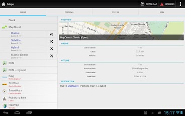 GPS outdoor navigation app for hiking, geocaching, sport activities and your everyday life. Download many types of cycling and hiking maps for off-line usage. Powerful system for geocaching, intelligent GPS for long battery life and many more➤ Online maps- Openstreetmap - OSM, Freemap, SHOCart, SmartMaps, MapQuest, Navigasi, Turaterkep, NzTopoMaps, Osmapa.pl, ChartBundle and more